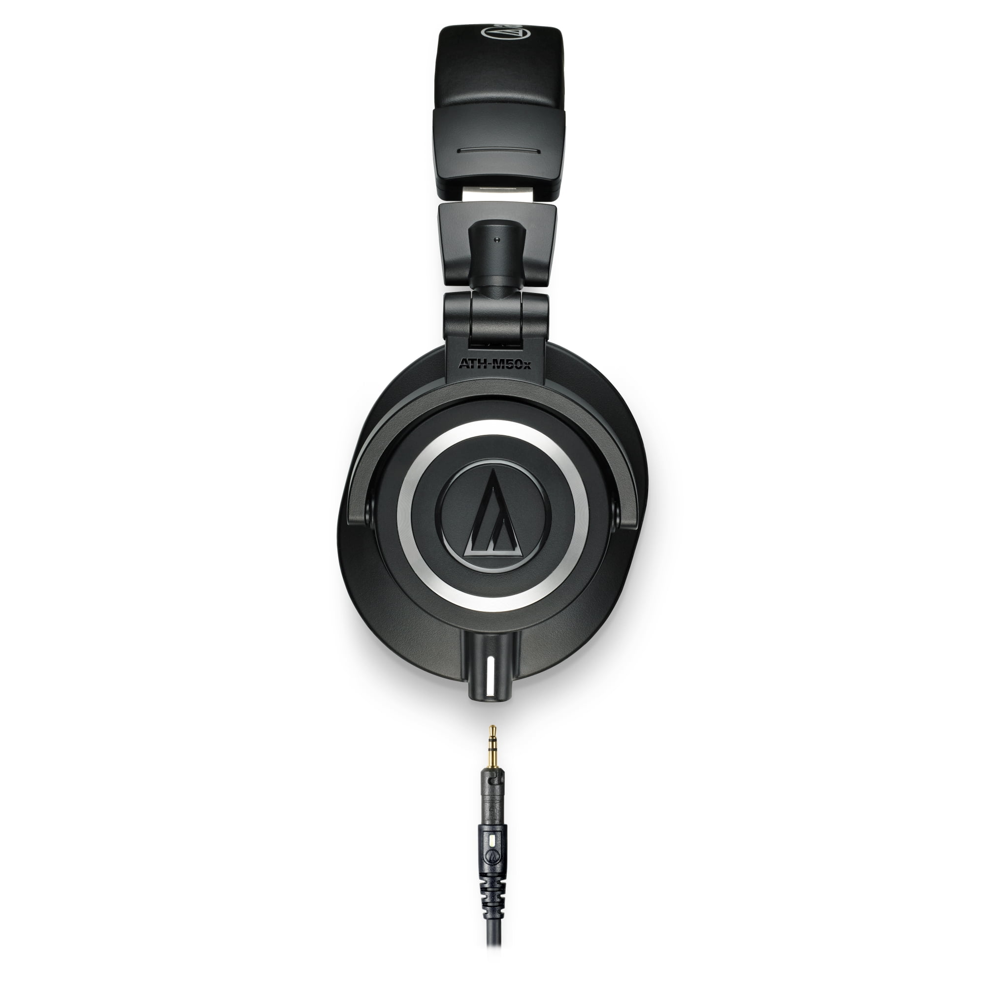 Constructed with professional-grade material, the ATH-M50x earpads and headband offer utmost durability and comfort. The ATH-M50x features 90° swiveling earcups for easy, one-ear monitoring, and are collapsible and fold flat for seamless traveling, making them great portable headphones.
