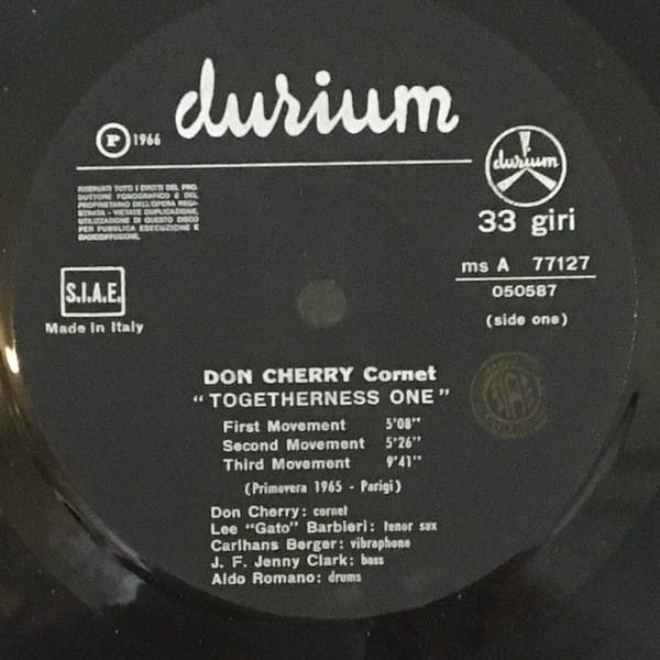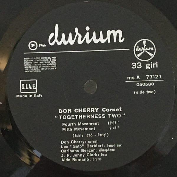 Collector grade, 60s recording of free jazz legend Don Cherry. Plays clean. From Don Cherry’s audiotape recorded in Paris in spring 1965 (Togetherness One) and summer 1965 (Togetherness Two).