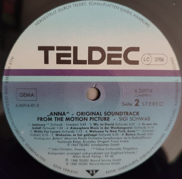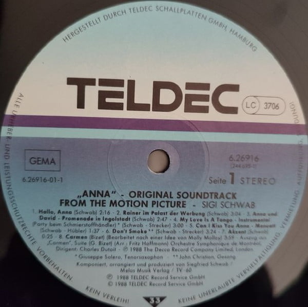 A1: Hallo, Anna A2: Rainer Im Palast Der Werbung A3: Anna Und David Promenade In Ingolstadt A4: My Love Is A Tango Instrumental (Party Beim Schmierstoffhändler) A5: Can I Kiss You Anna Menuett A6: Don't Smoke A7: Akzent A8: Carmen B1: Jealousy B2: Wo Ist David B3: Es War Ein Unfall B4: Atmosphere Music In Der Werbeagentur B5: Waltz For Lovers B6: Welcome To New York, Anna B7: Wahnsinn, Es Hat Geklappt B8: Bolero